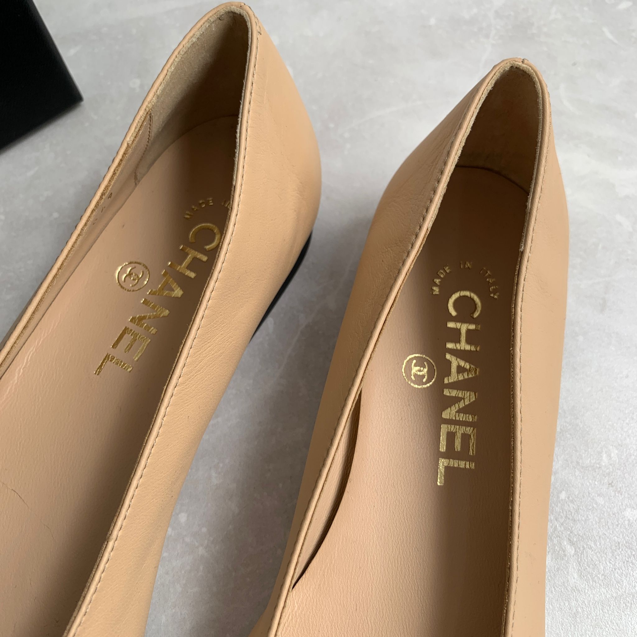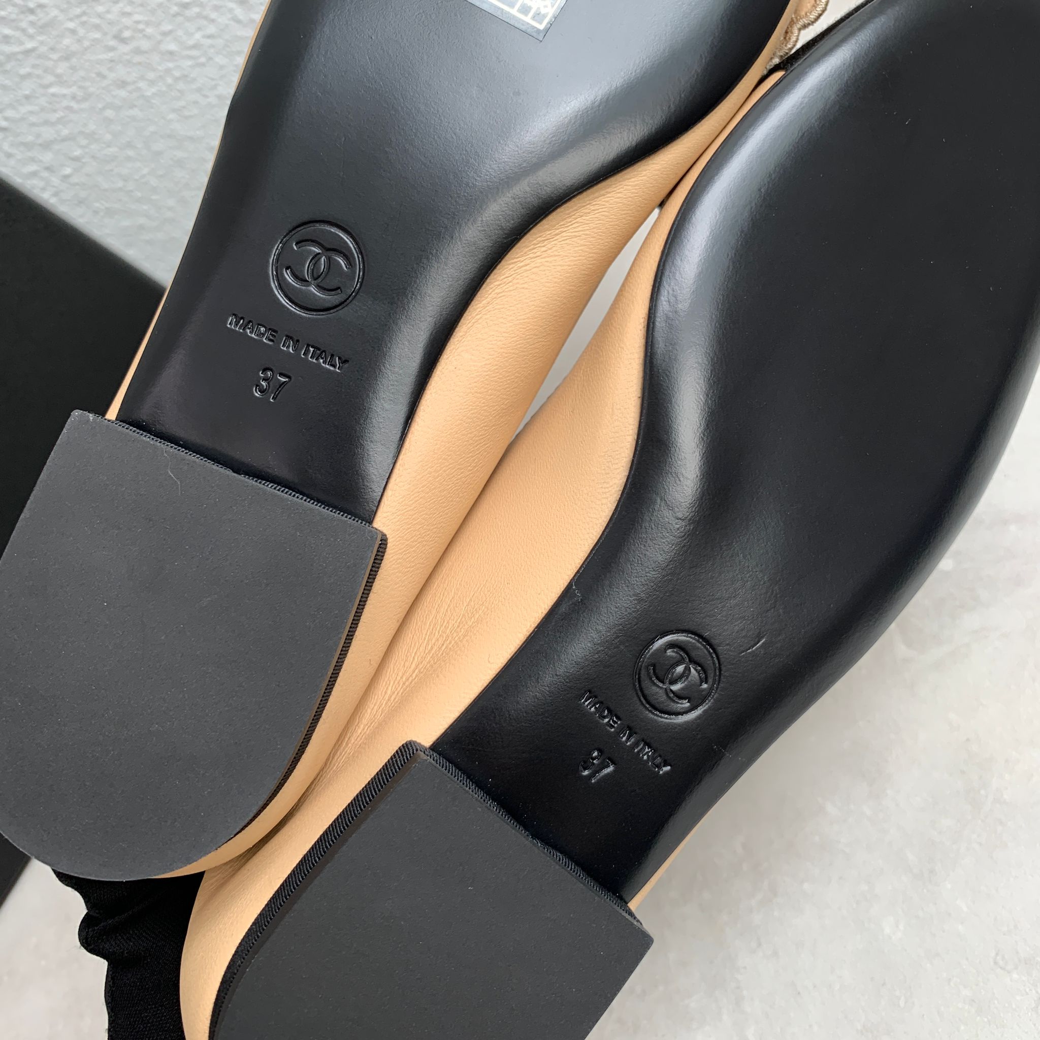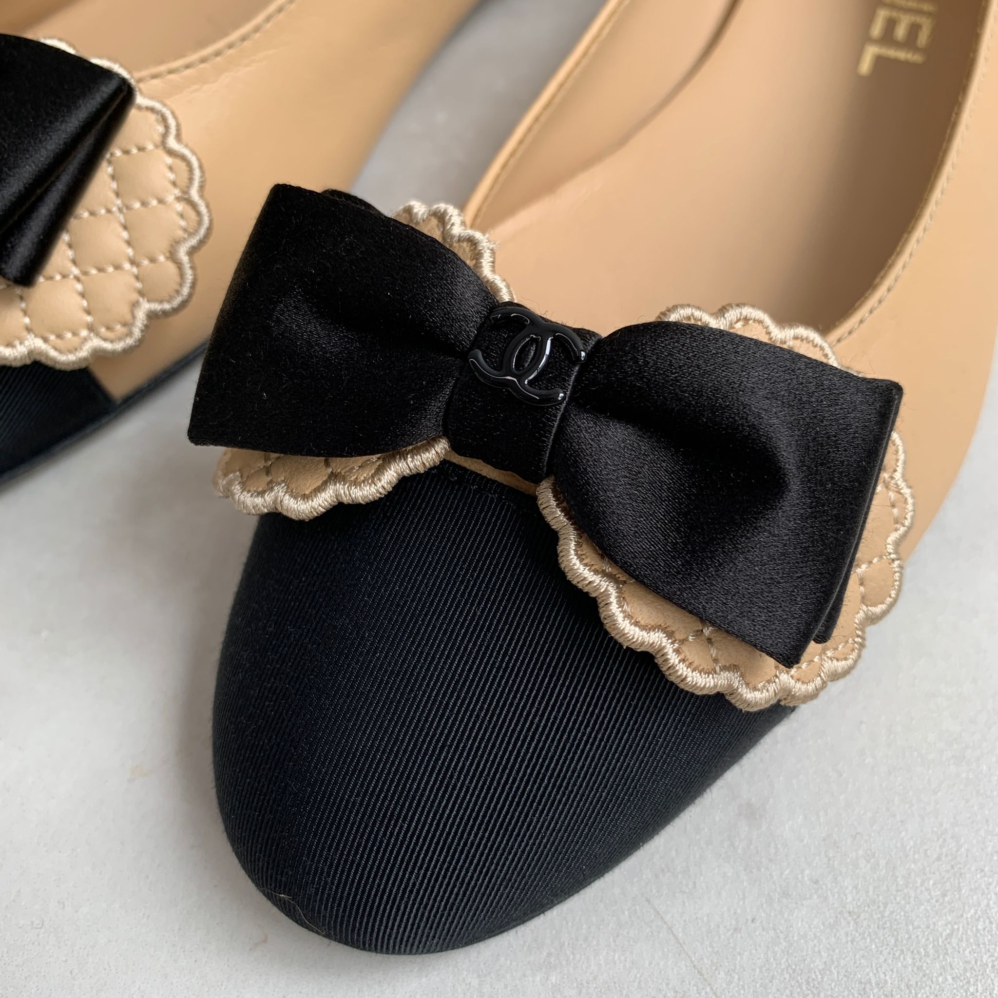 Chanel 低跟米色配黑蝴蝶蛙娃鞋