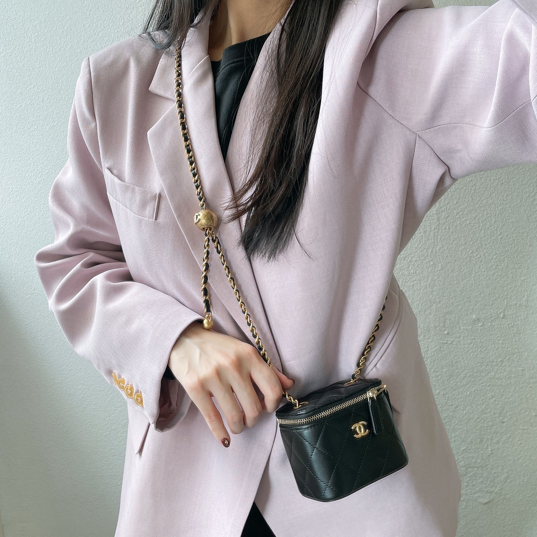 搶先評價 “Chanel 黑色羊皮金球方盒子”
