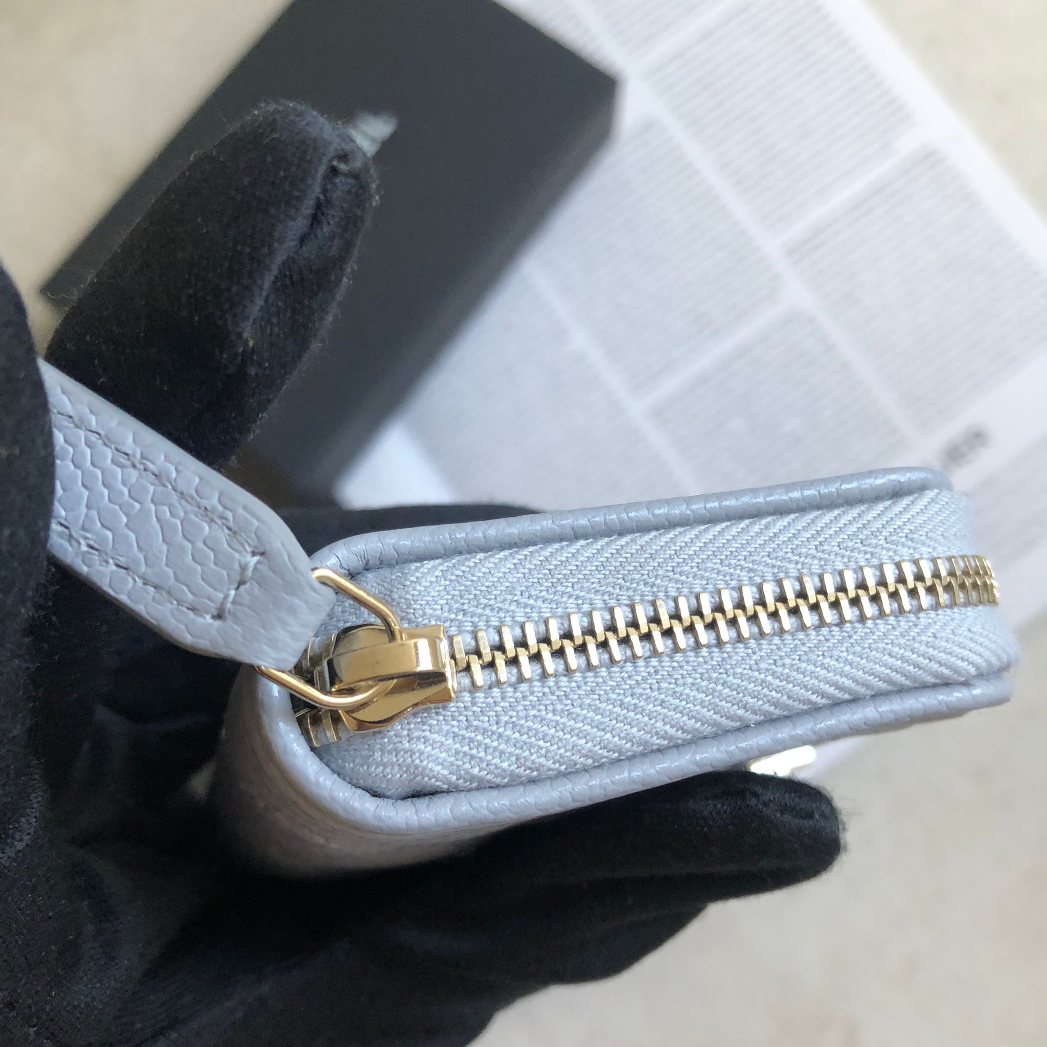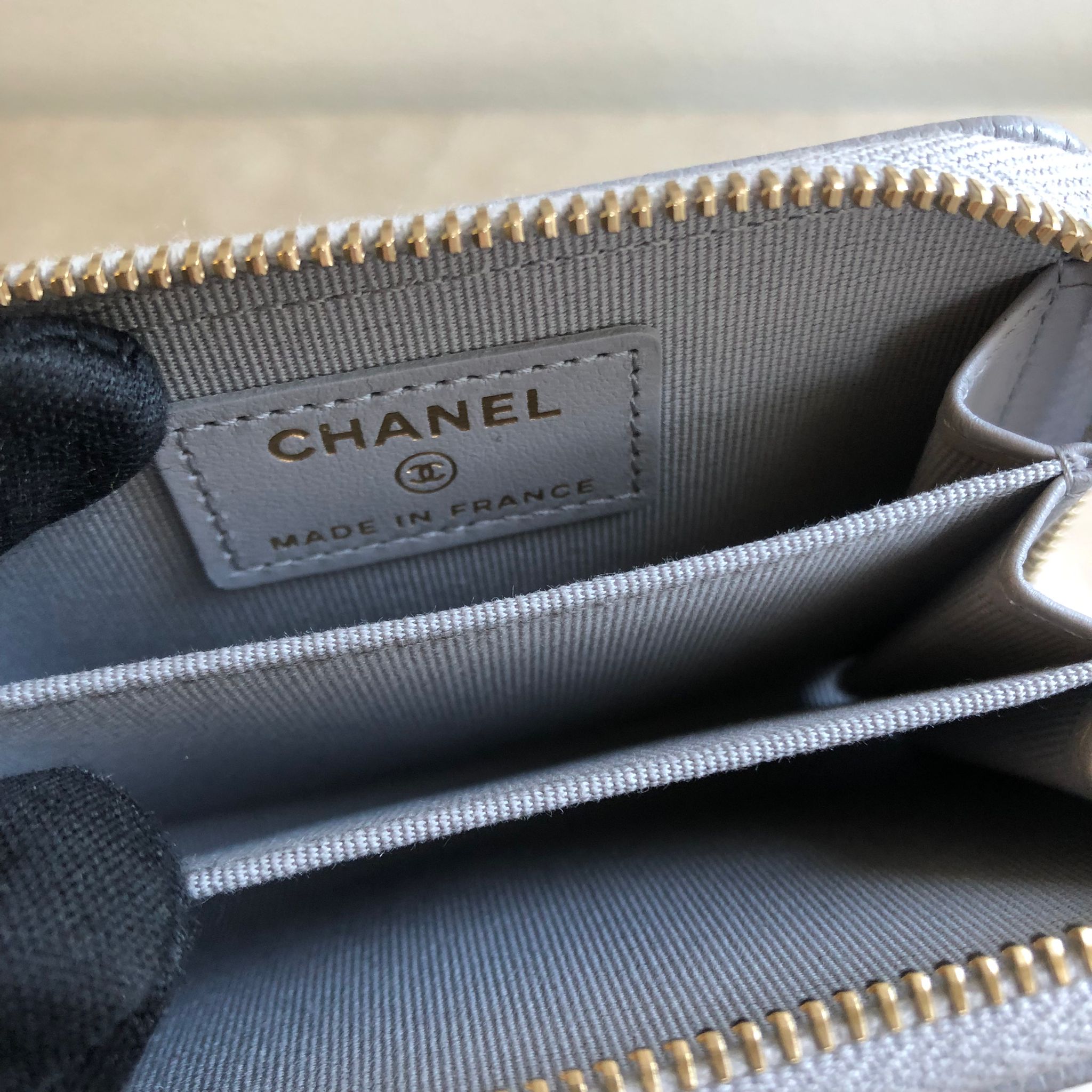 Chanel Boy 灰色荔枝皮金扣拉鍊卡包
