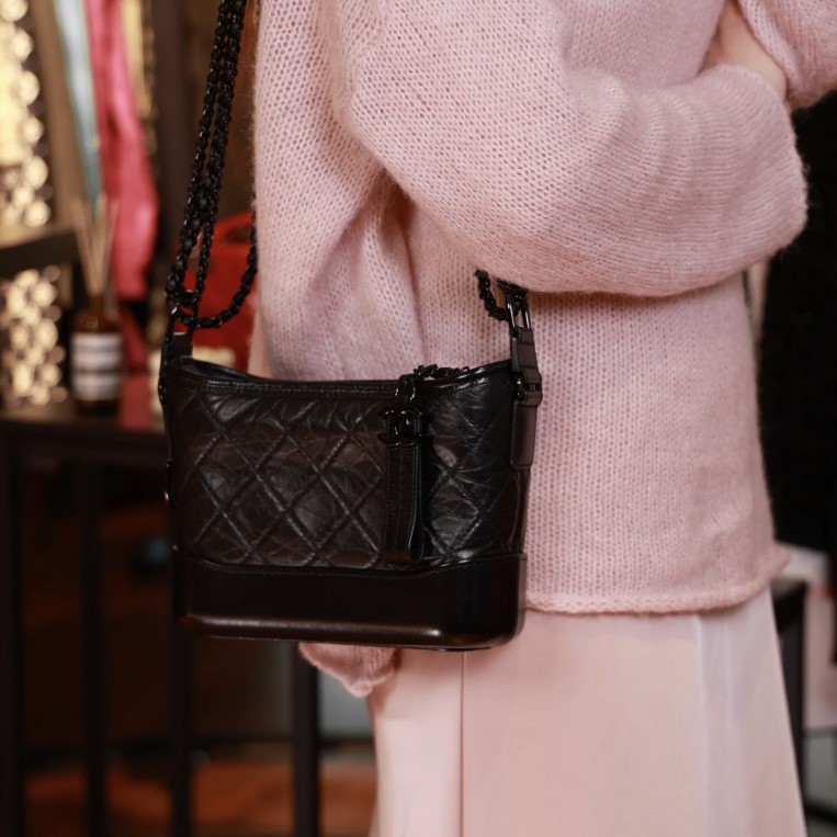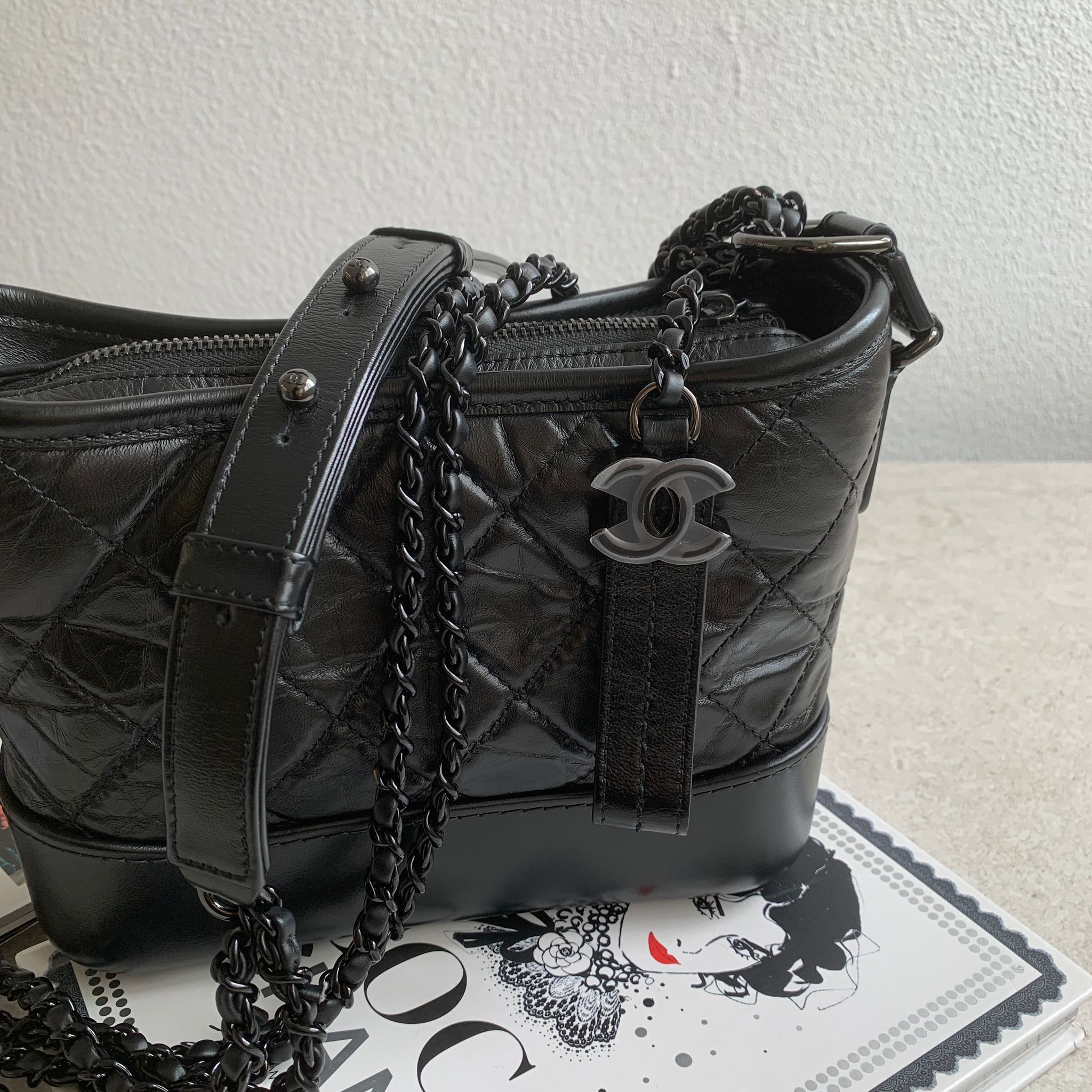 Chanel Gabrielle Hobo Bag Mini So Black 黑黑釦 流浪包小號