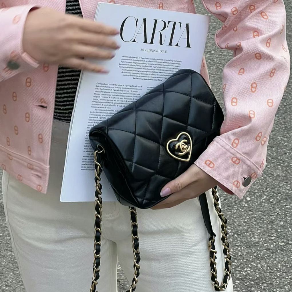 Chanel Mini Flap Bag 23S 愛心珐瑯釦方胖包是融合了浪漫與時尚的獨特設計,