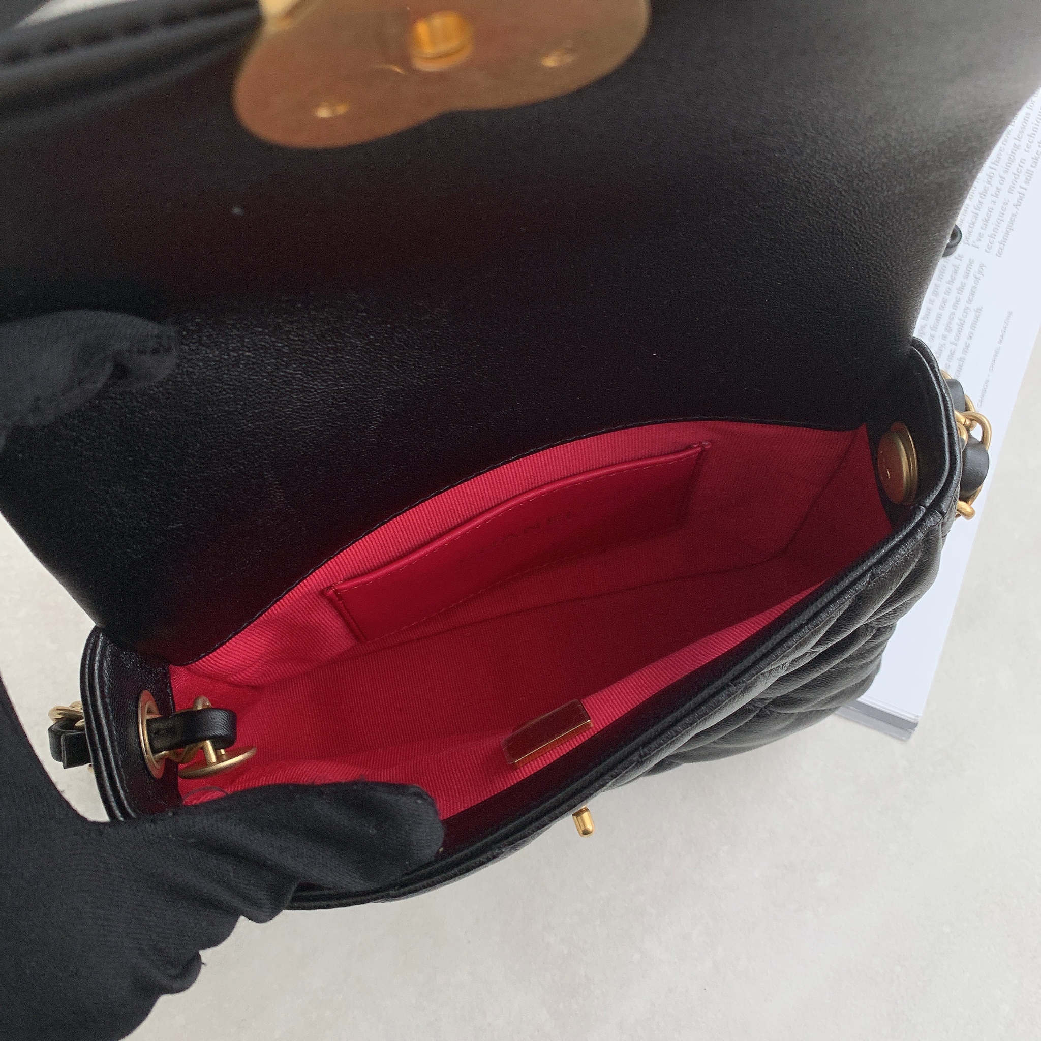 展現了Chanel對細節的精緻追求。這款包採用柔軟的小羊皮製成,