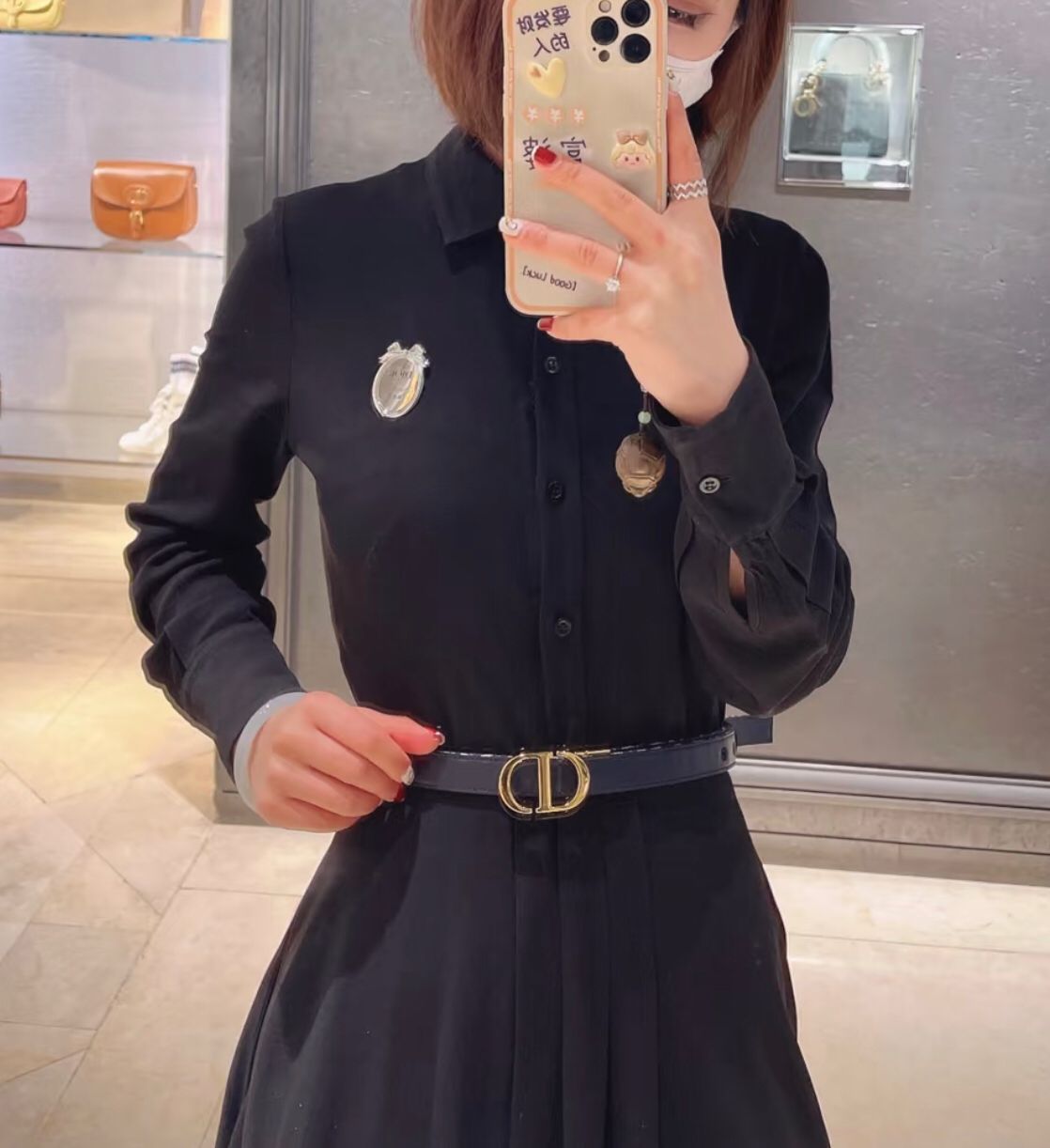 飾有標誌性的閃亮金色金屬 CD 帶扣。
