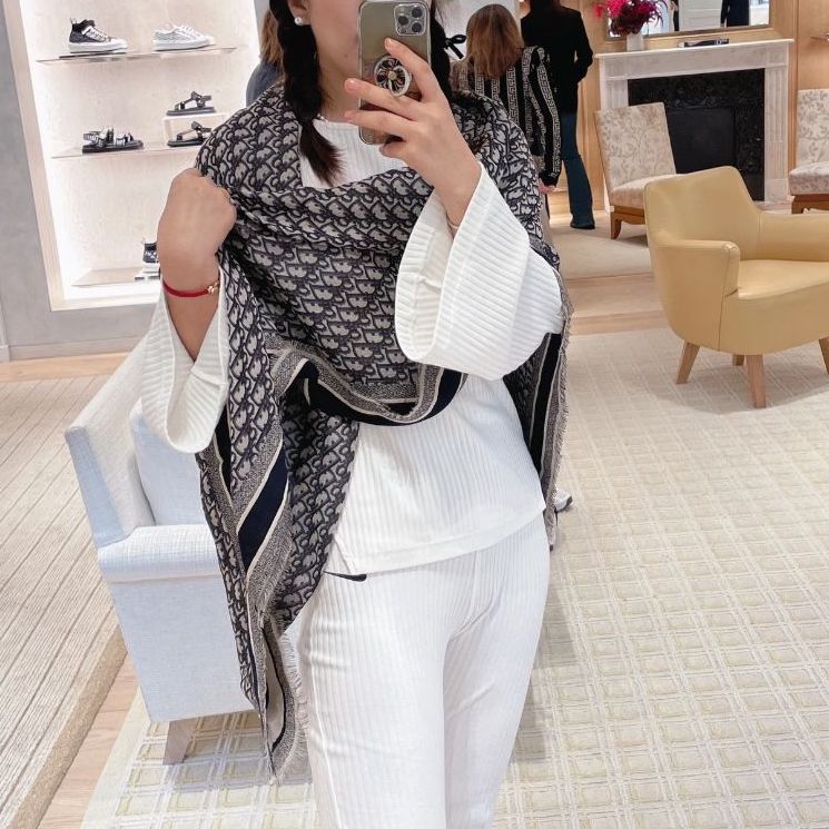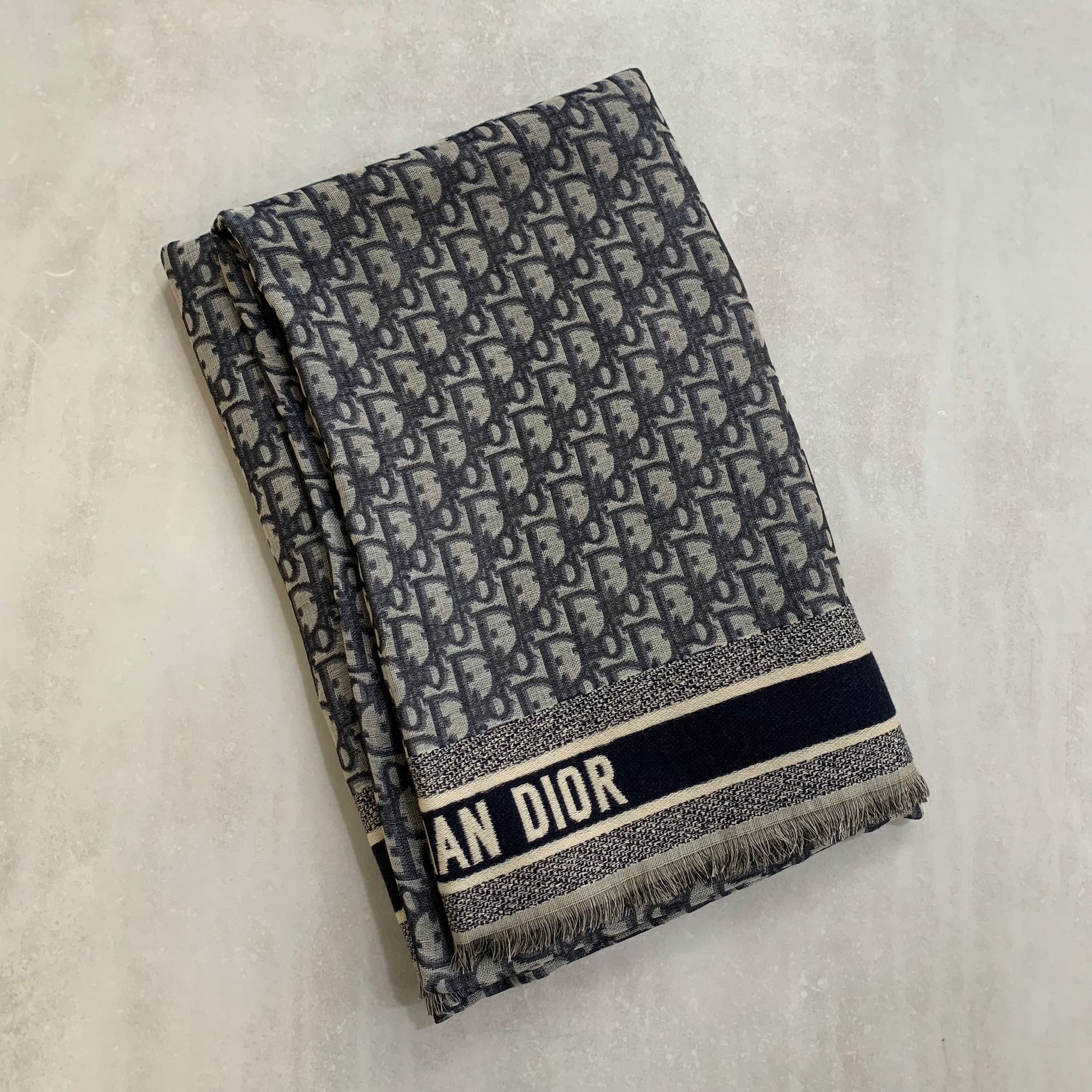 搶先評價 “Dior Oblique 海軍藍混羊毛披巾”