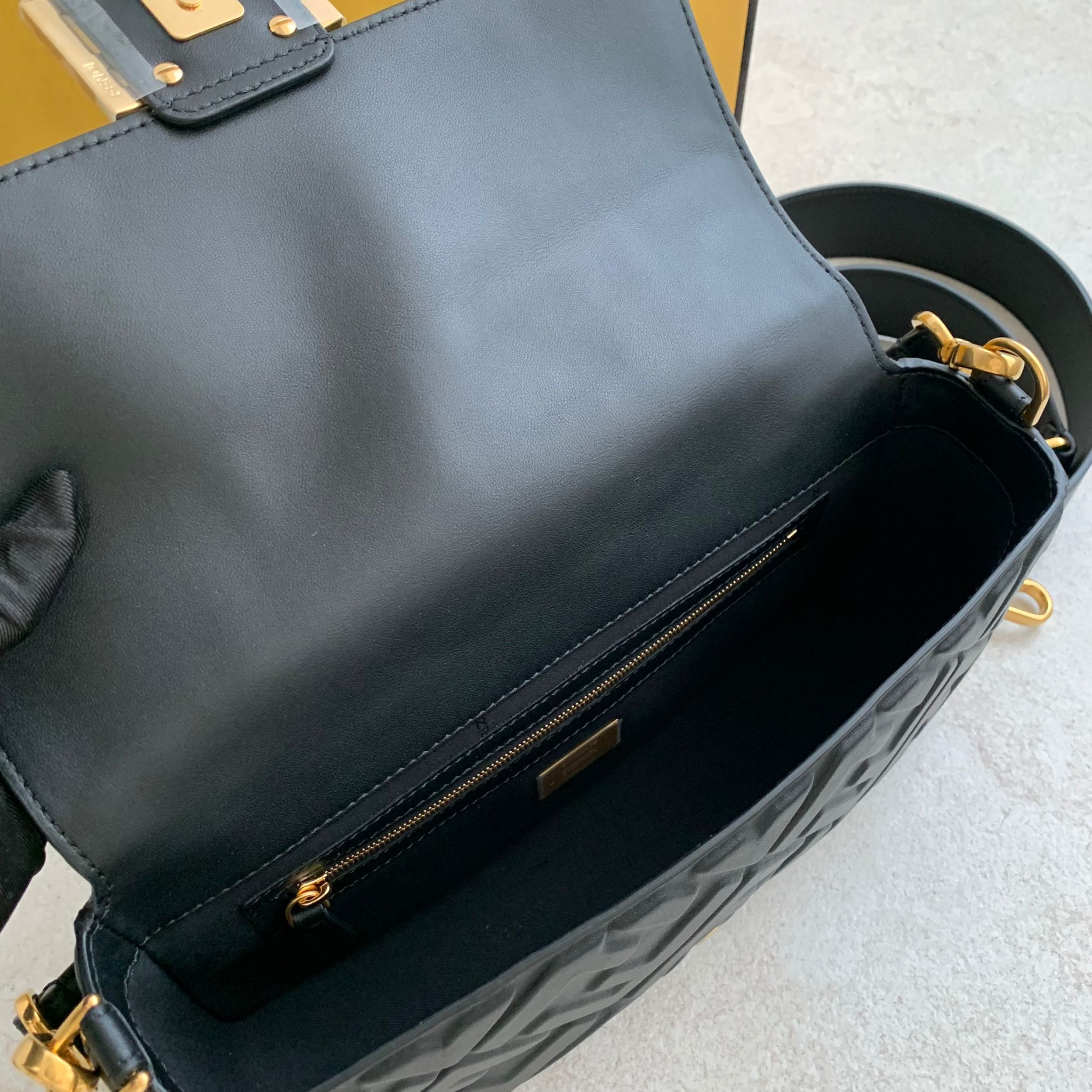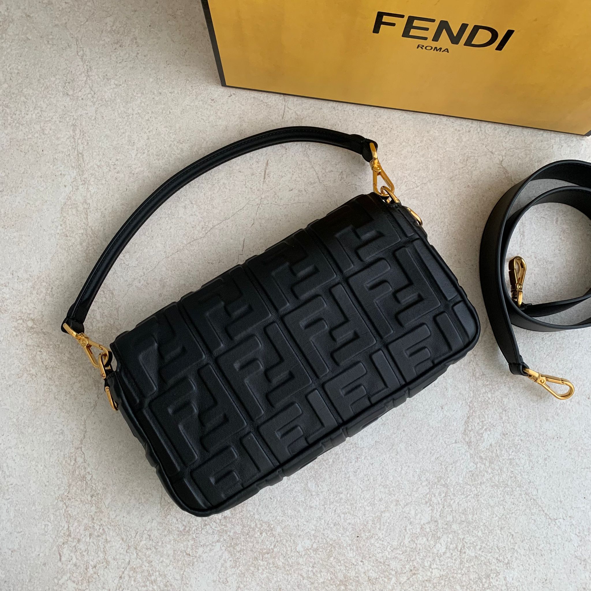 Fendi Baguette 黑色浮雕小羊皮法棍包