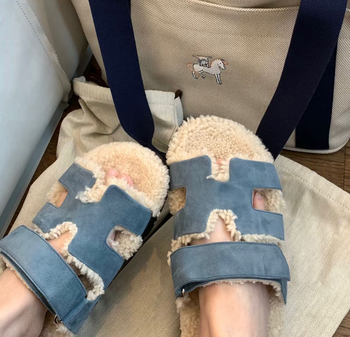 搶先評價 “Hermès 藍色二舅毛毛拖鞋”