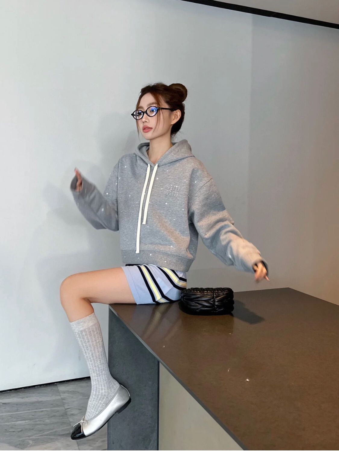搶先評價 “Miu Miu SS24 灰色水鑽連帽T恤”