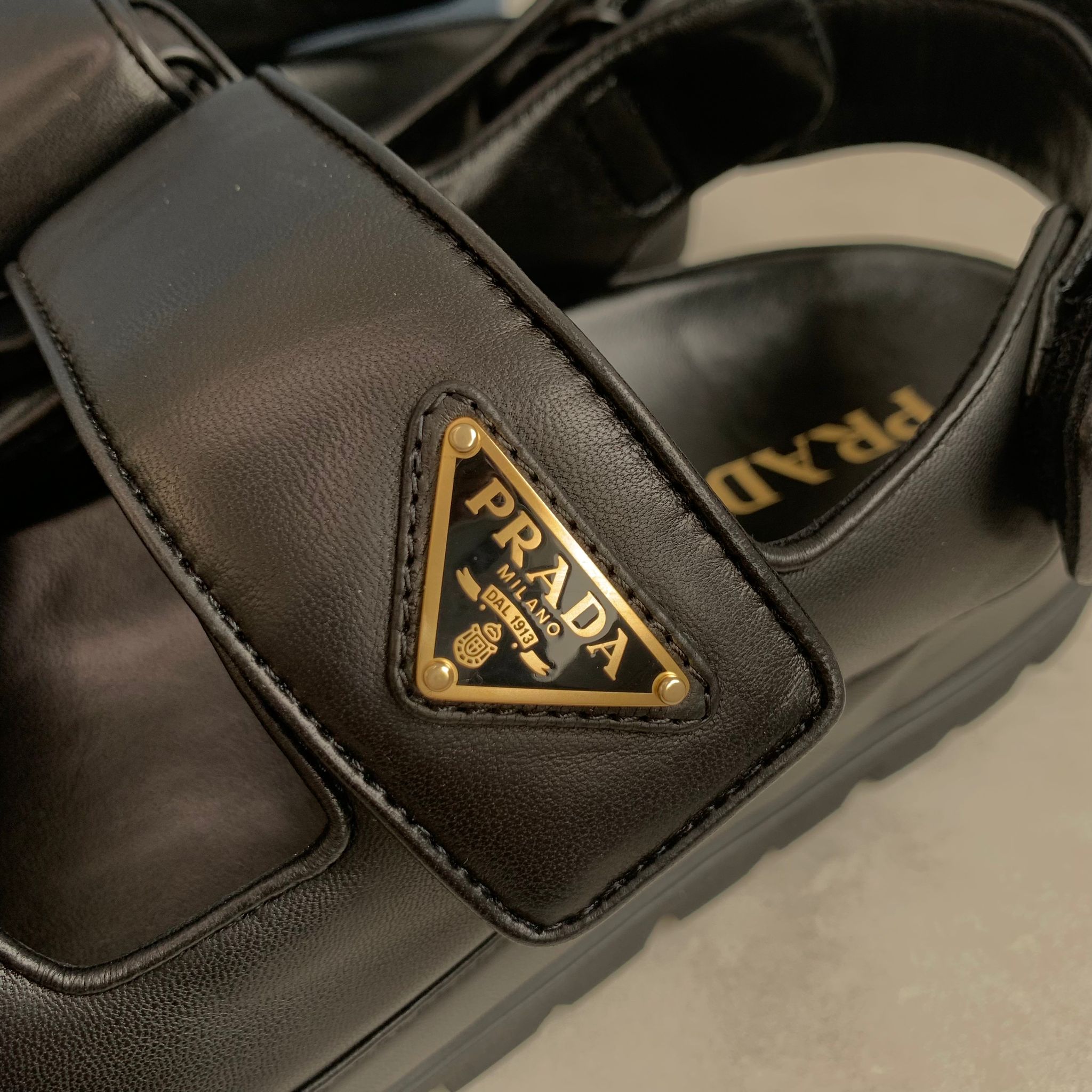 搶先評價 “Prada Black Triangle Logo Leather Sandals魔鬼氈涼鞋”