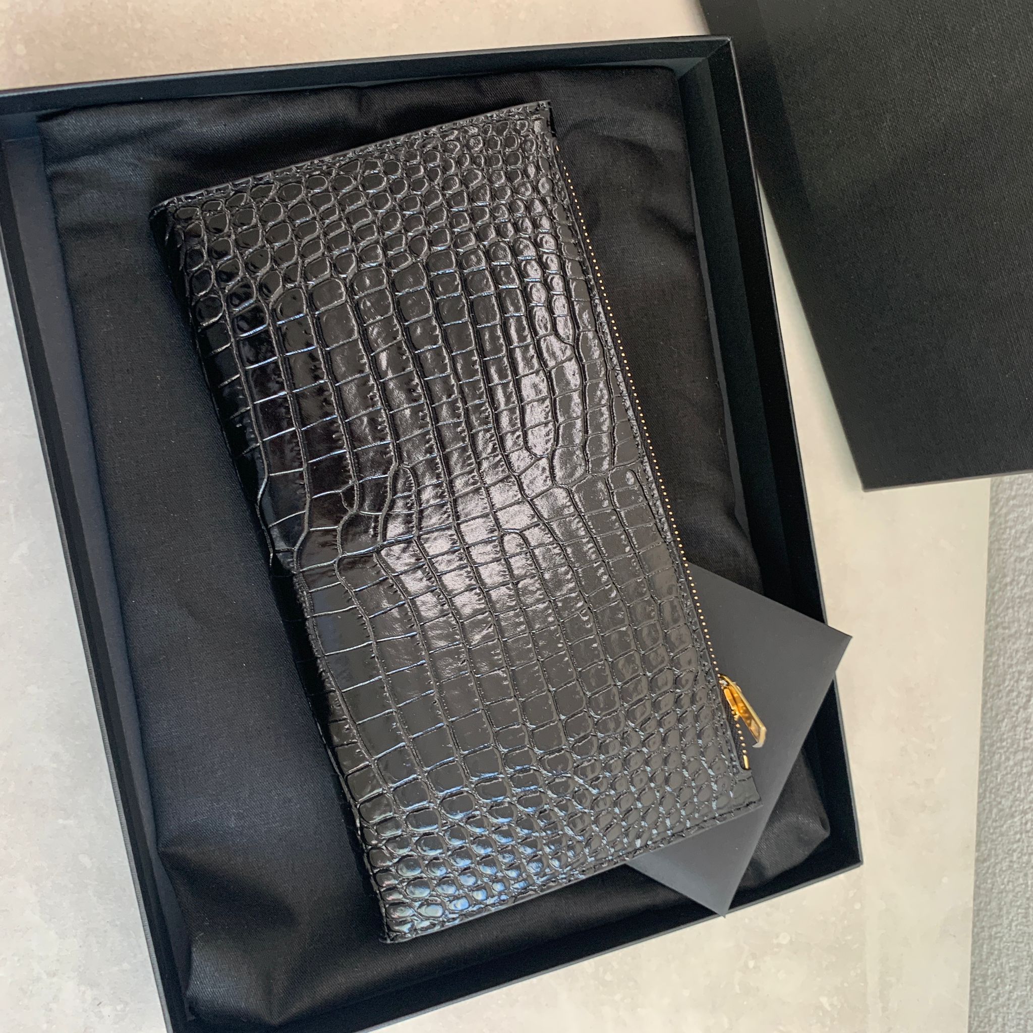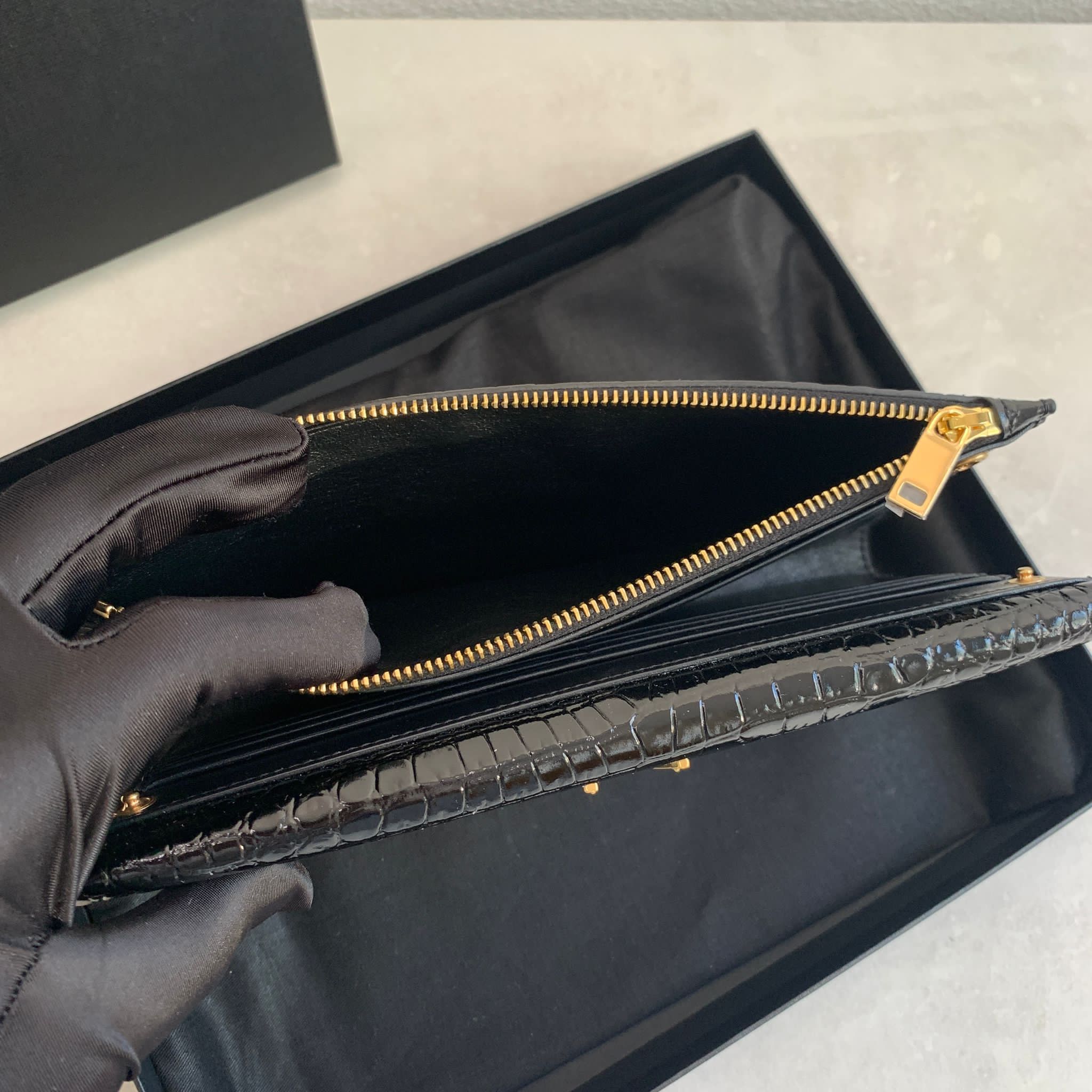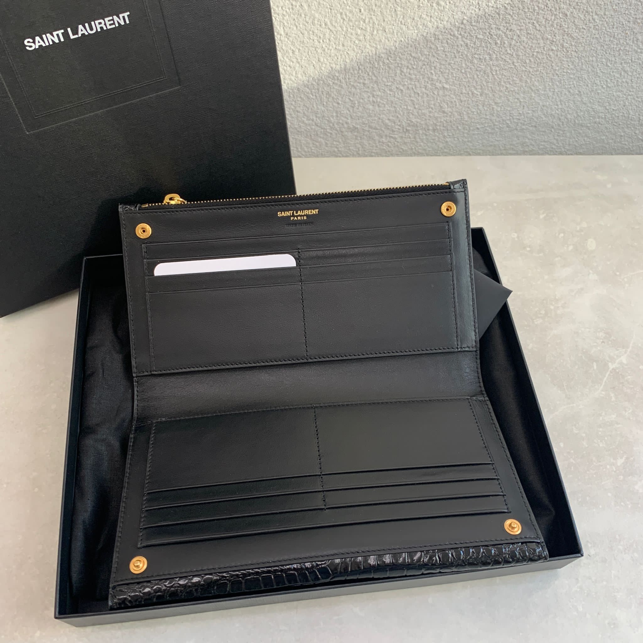 YSL 信封鱷魚壓紋牛皮對開長夾