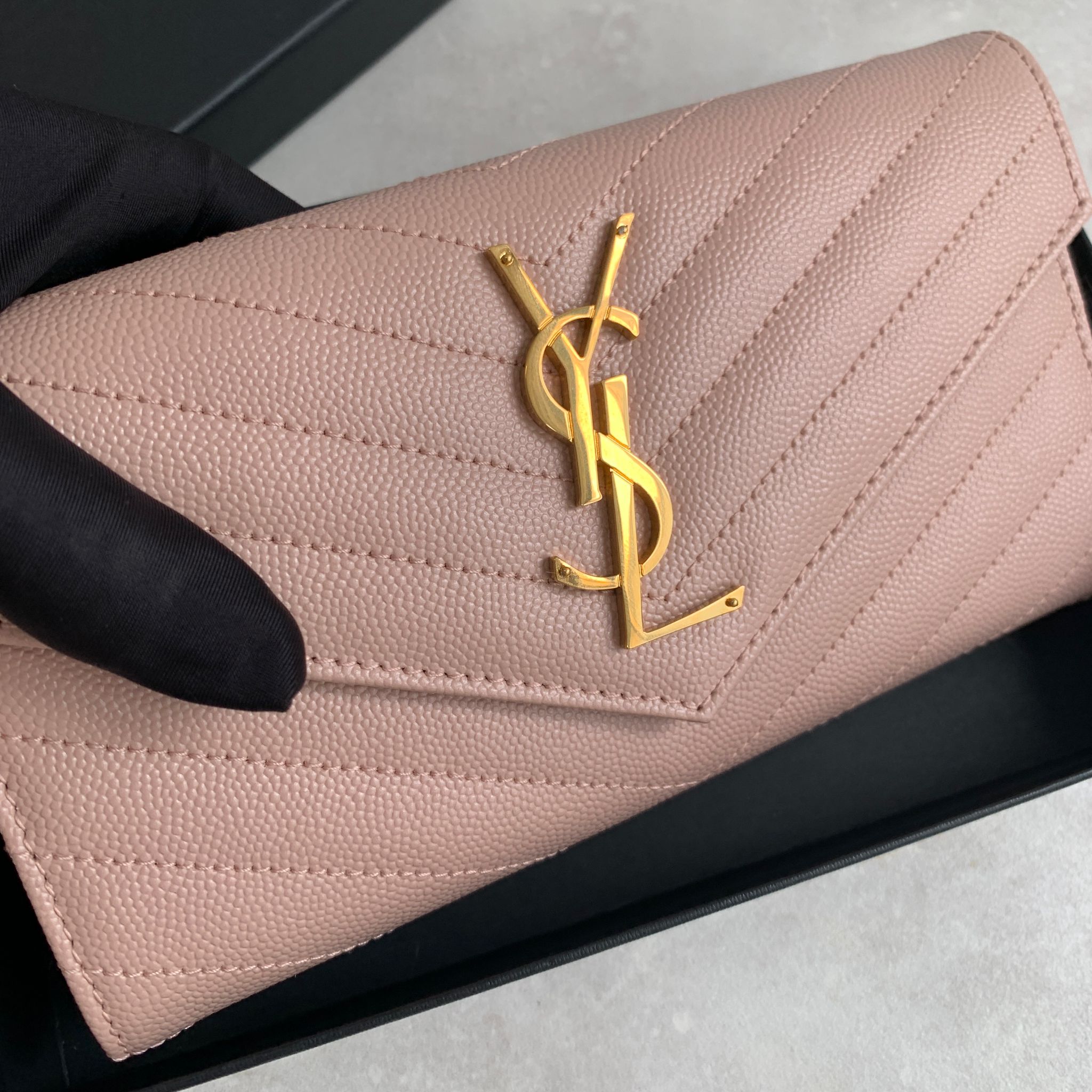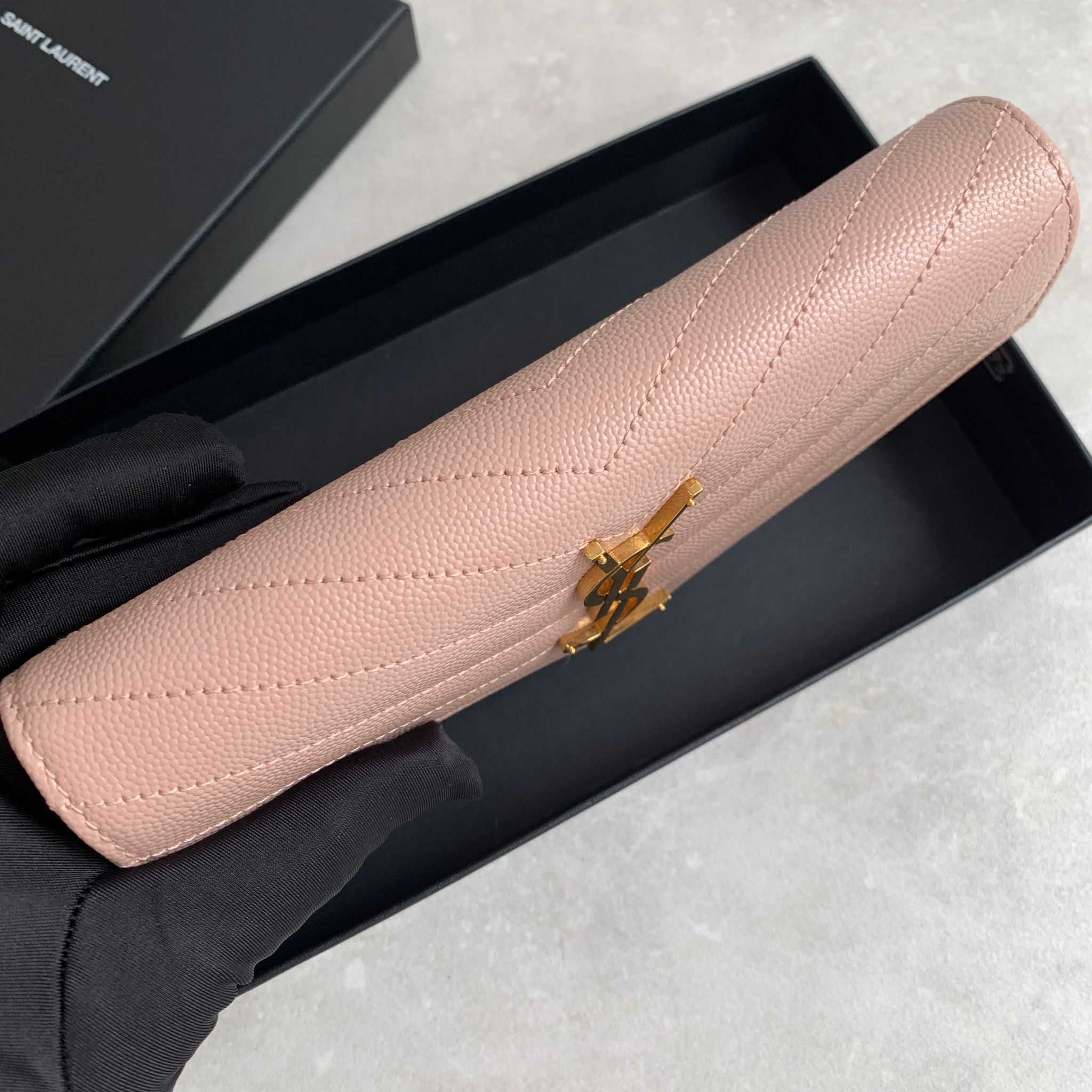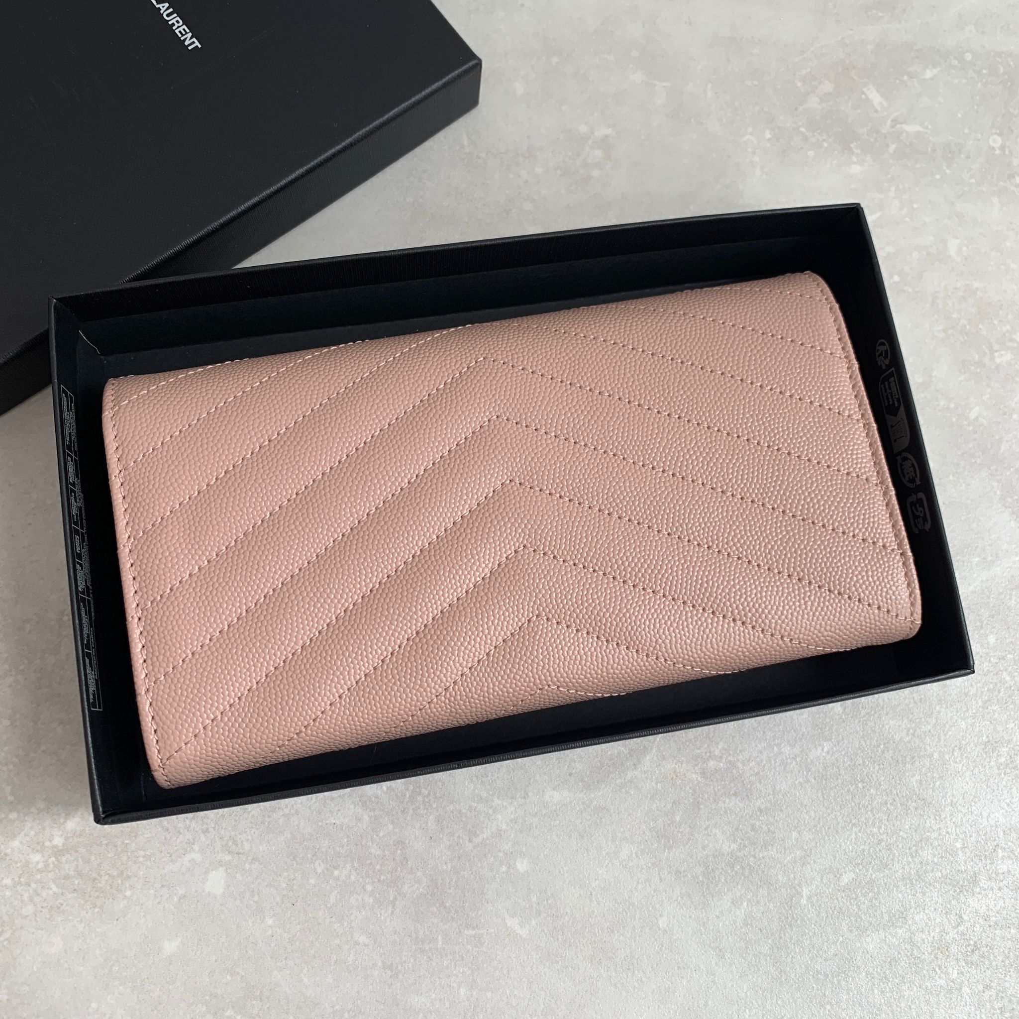 Ysl Cassandre Saint Laurent Matelasse 淡粉色荔枝皮翻蓋信封長夾